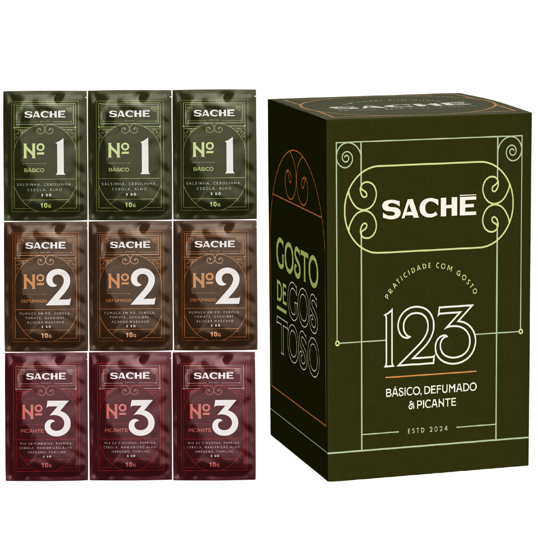 Caixa 9 Sachês | Tempero natural básico, defumado e picante